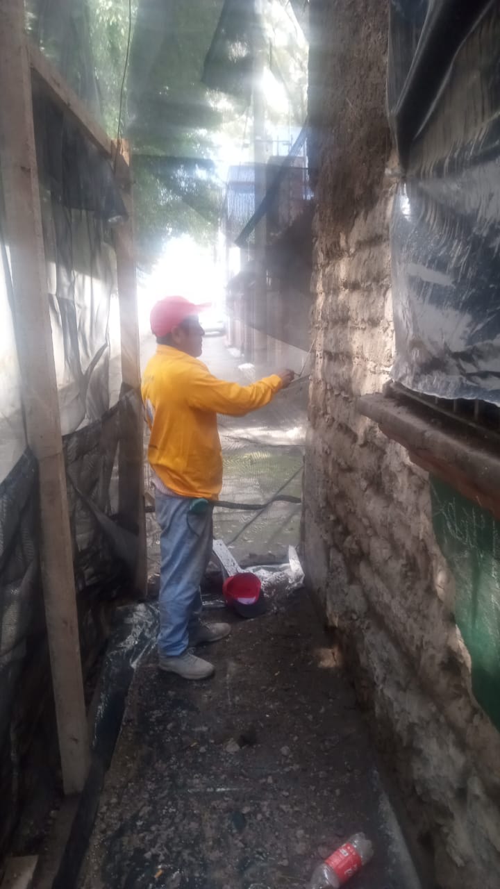 Una vez que se haya terminado el proceso de liberación los pintores de casas deben consolidar de superficie de los muros de adobe con agua y cal. Los trabajos consisten en realizar la aplicación de agua y cal a saturación de 2 manos, permitiendo entre cada aplicación el secado de la superficie de 12 horas para que el proceso de secado sea eficiente y pueda aplicarse una segunda capa.